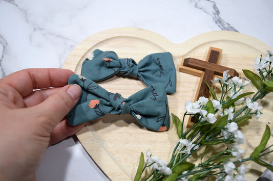Catholic Knotted Hair Bows - Teal Beloved Wildflowers