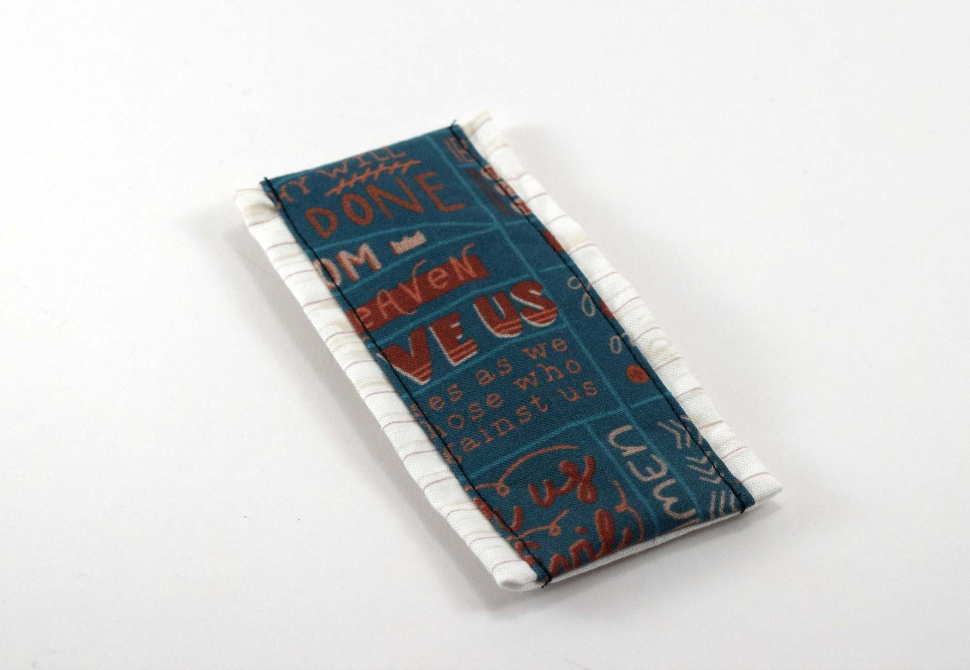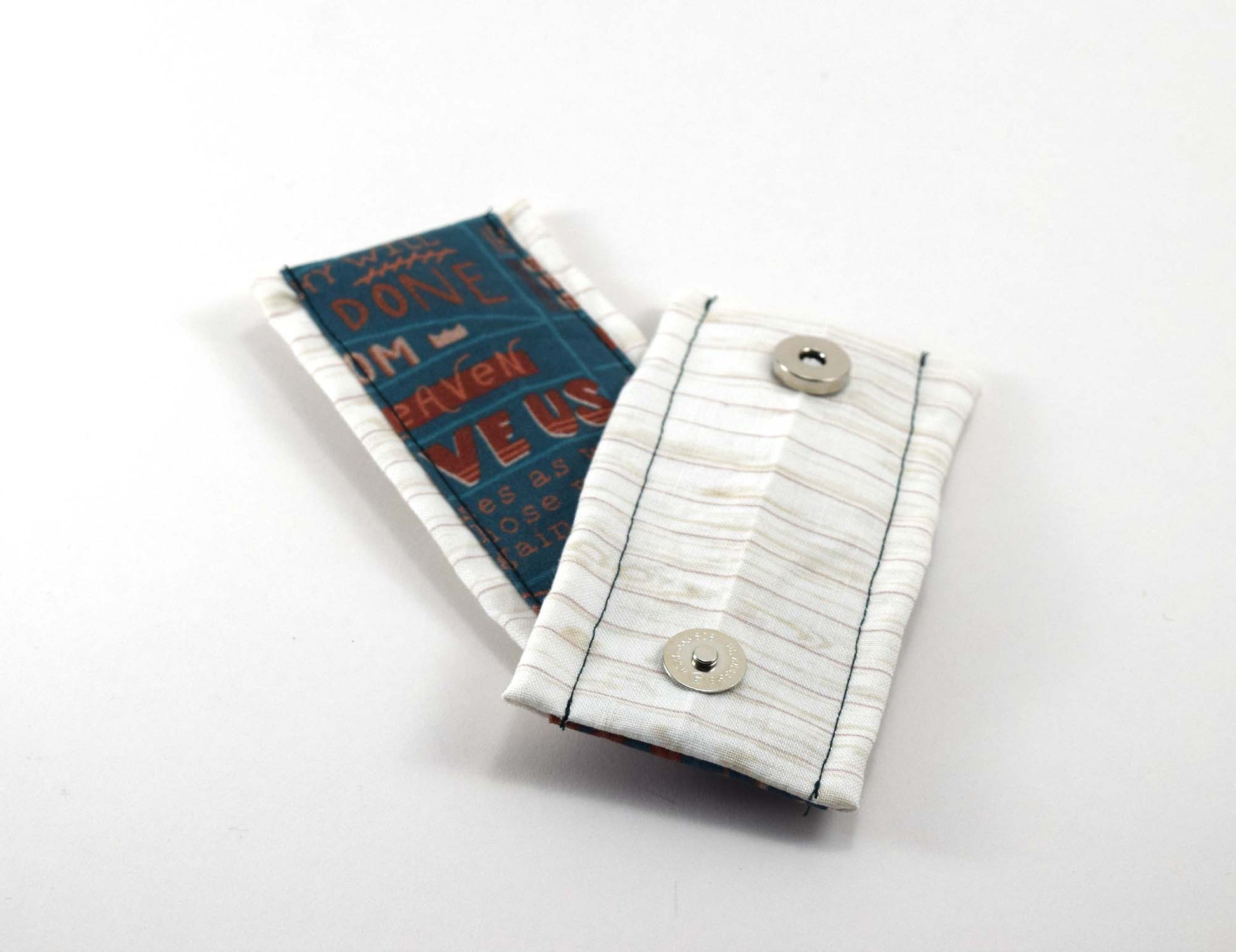 Crafted from high-quality green cotton fabric, featuring a fun Our Father prayer print, with a fun wood grain print as a contrast fabric, these cord keepers are as durable as they are attractive. Plus, the magnetic snap closure ensures that your cords stay securely in place while still being easy to access.