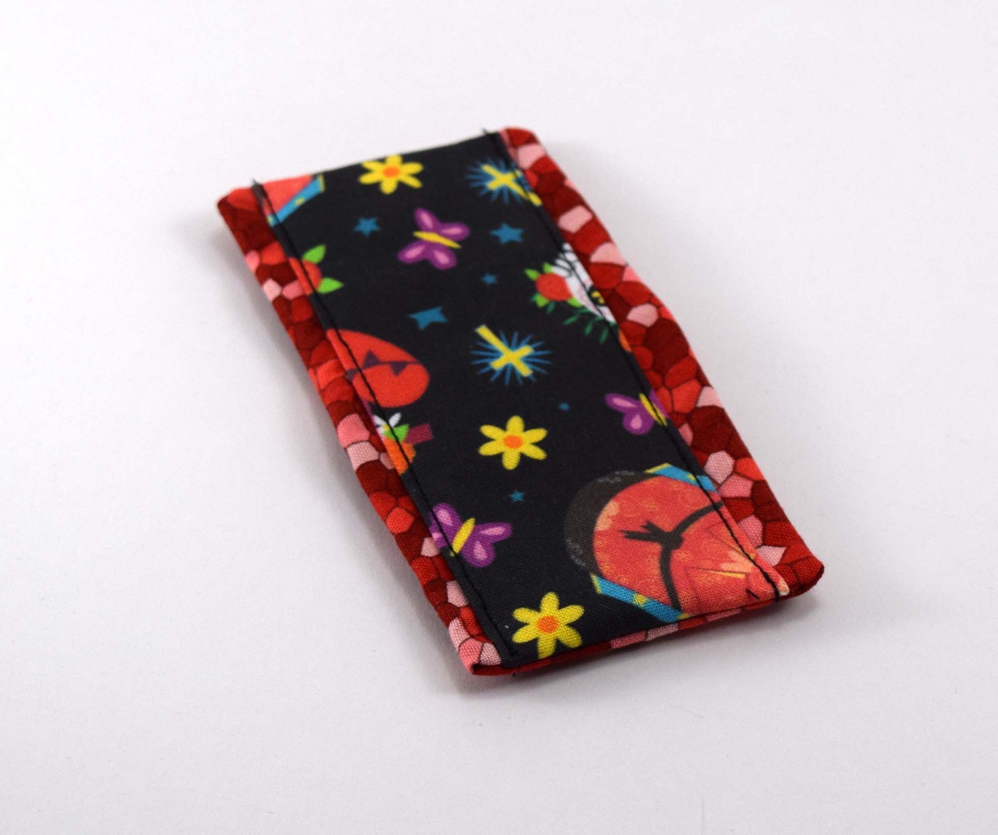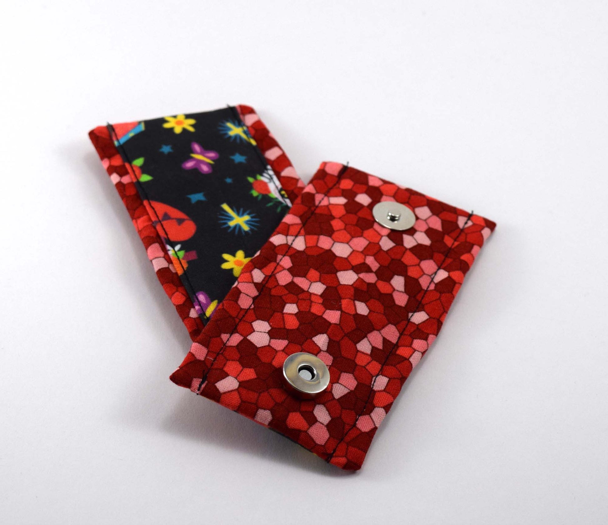 Crafted from high-quality black cotton fabric, featuring a fun Our Lady of Guadalupe and Dia de los Muertos print, with a fun red stained glass print as a contrast fabric, these cord keepers are as durable as they are attractive. Plus, the magnetic snap closure ensures that your cords stay securely in place while still being easy to access.