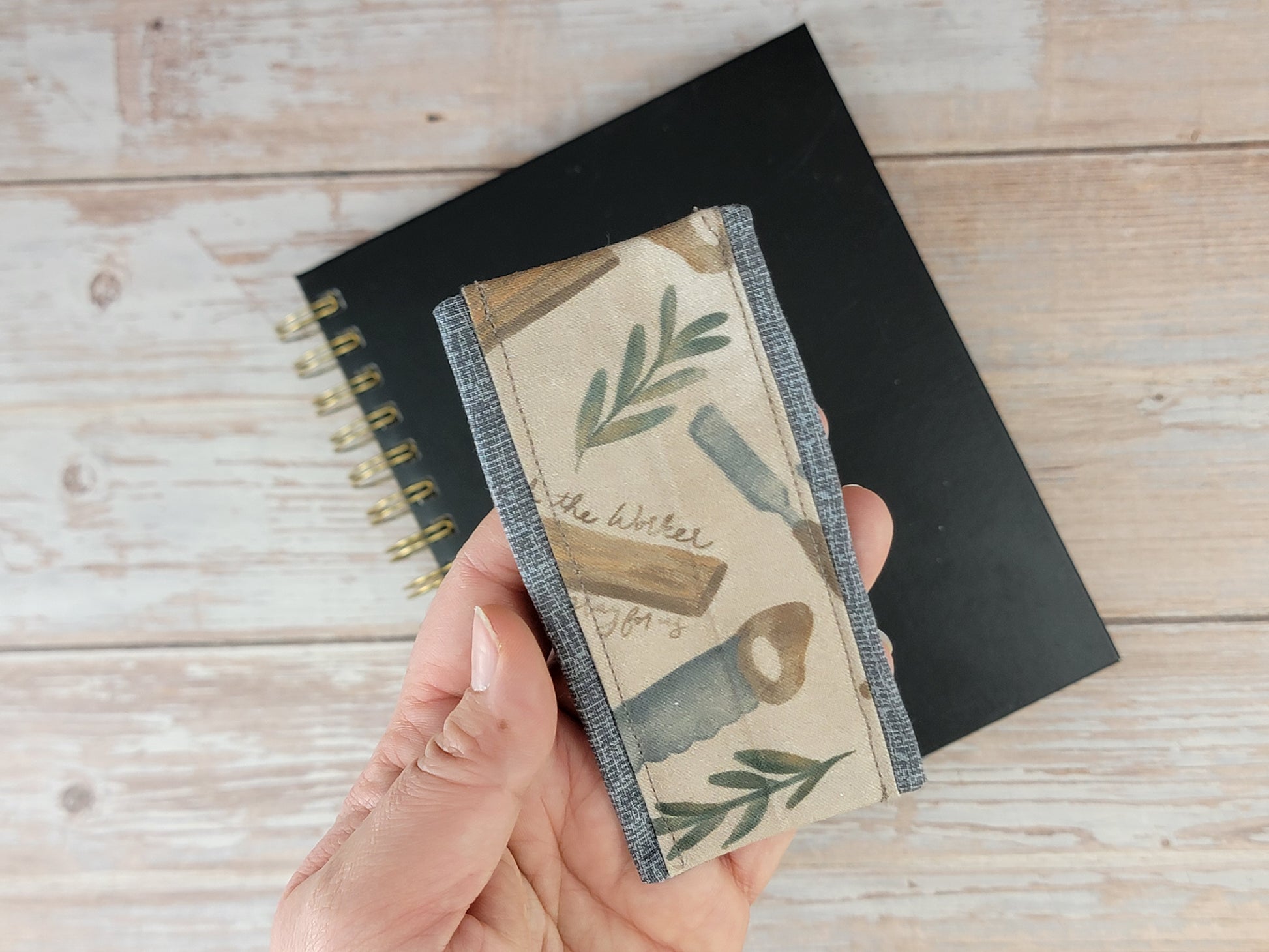 Crafted from high-quality green cotton fabric, featuring a striking St Joseph inspired print with greay as a contrast fabric, these cord keepers are as durable as they are attractive. Plus, the magnetic snap closure ensures that your cords stay securely in place while still being easy to access.