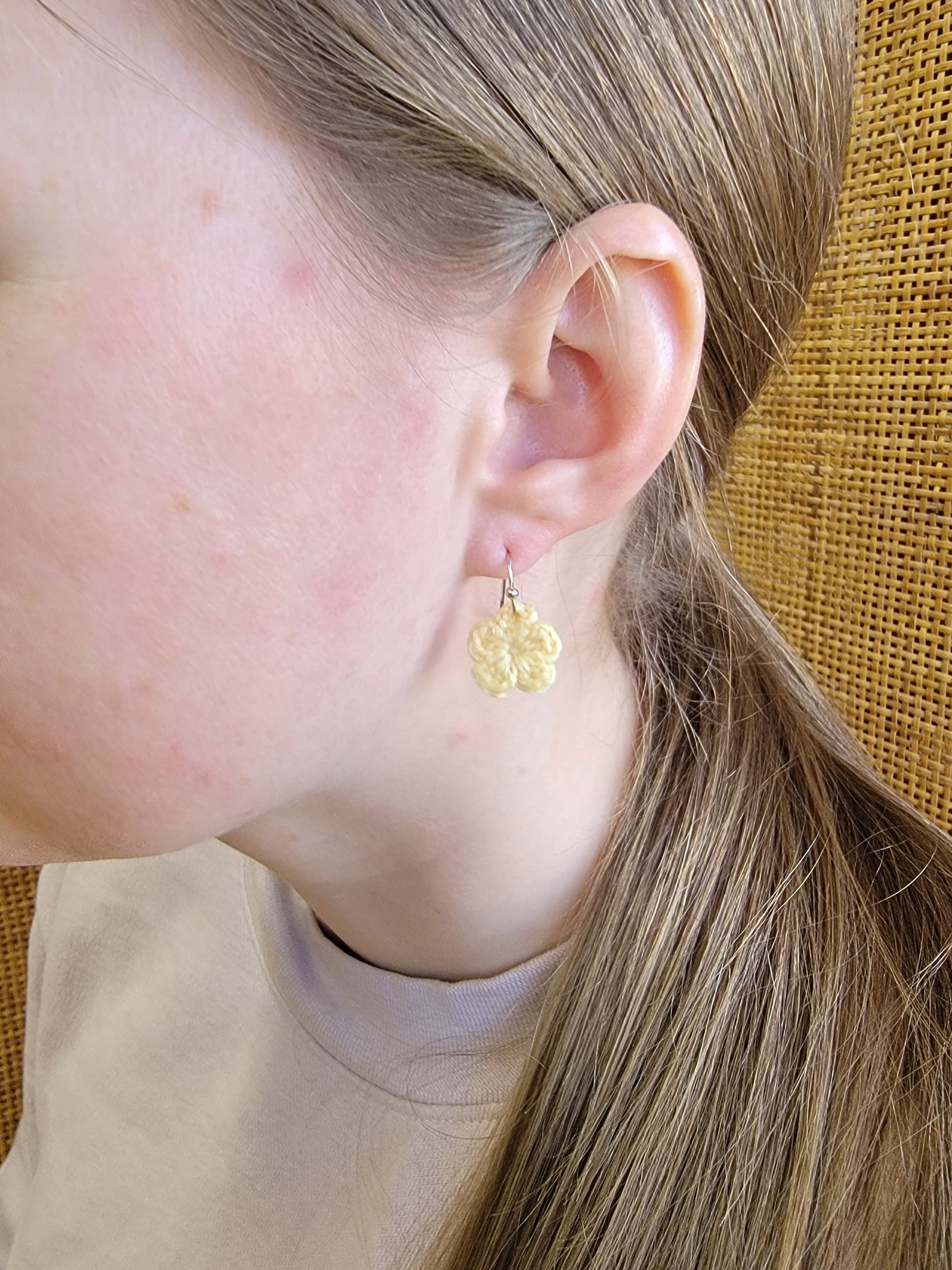 Carry a gentle reminder of the Blessed Virgin Mary and her beautiful Mary Garden tradition with these delicate crochet flower earrings, crafted from soft yarn into blooming floral designs. Inspired by the symbolic flowers dedicated to Our Lady these earrings bring a touch of Marian devotion and whimsy to your everyday style!