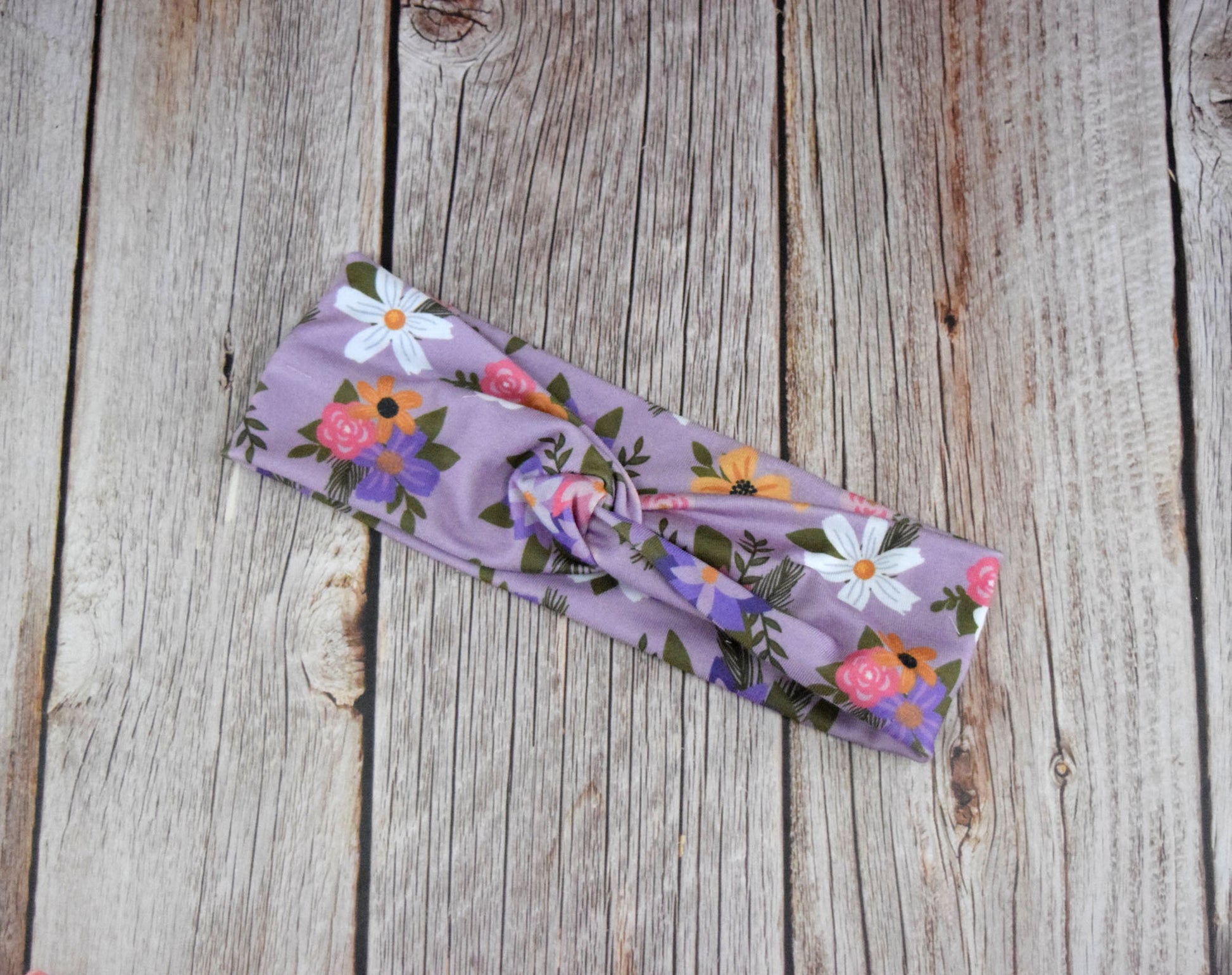 Featuring sweet advent color floral print on a purple background, this headband is both stylish and functional.