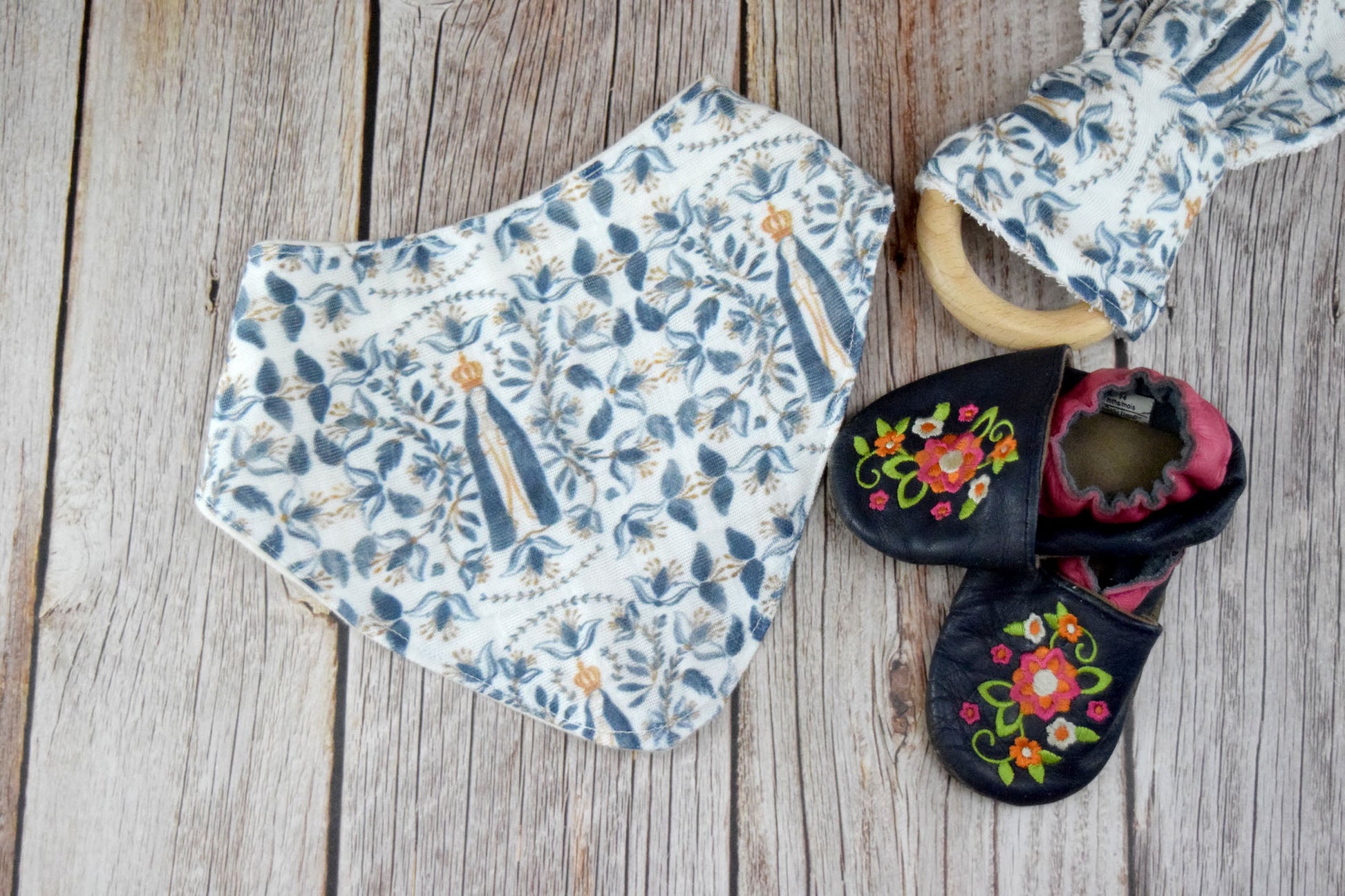Our soft and lightweight Our Lady of Fatima Bandana Baby Bib is designed to keep your little one dry and stylish during those teething months!